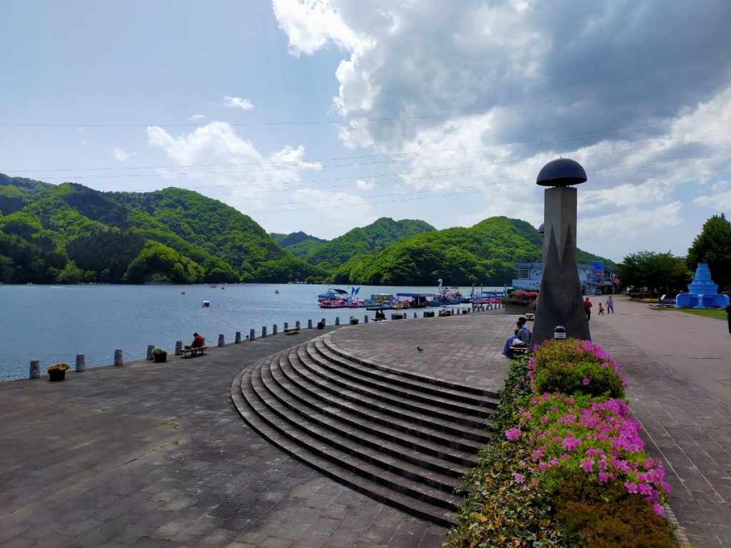 2時間ほどで相模湖近辺に来たので、県立相模湖公園でいったん休憩。